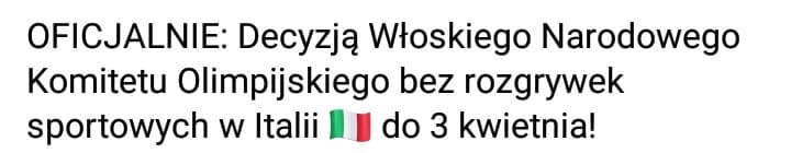 Z kolei wszystkie wydarzenia sportowe w Italii zostały odwołane do 3 kwietnia. Także fani calcio nie obejrzą rozgrywek Serie A.