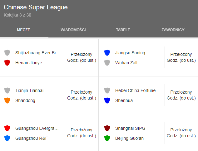 Najgorsza sytuacja jest w „ojczyźnie” koronawirusa, czyli w Chinach. Tamtejszy sezon Chinese Super League zostanie prawdopodobnie odwołany. Terminarz raczej nie zachęca do oglądania meczów tej ligi