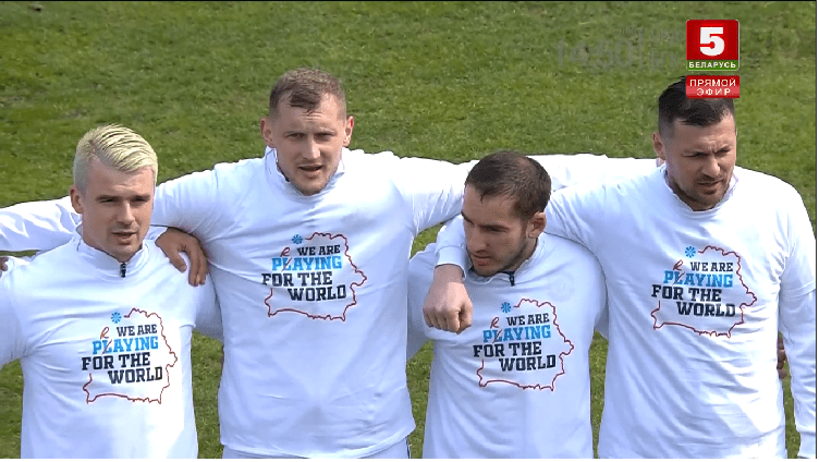 Wszystkie drużyny przed meczem wyszły w koszulkach z napisem „My gramy dla świata”. To ma związek z faktem, że Białoruś jest jedyną w Europie i jedną z nielicznych na świecie ligą, która mimo epidemii COVID-19 gra normalnie.