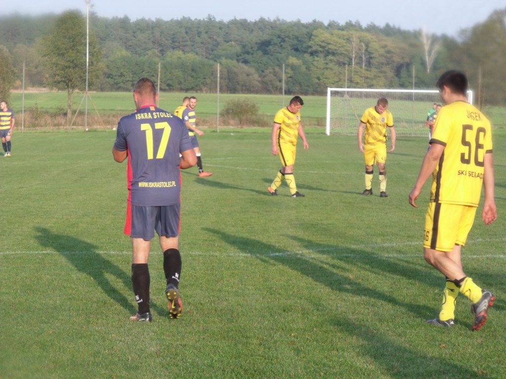 Wczoraj odwiedziliśmy mecz sieradzkiej klasy-B, gr. 1. Iskra Stolec, która nie wygrała dwóch ostatnich meczów przed niedzielnym, podejmowała SKS Sieradz – beniaminka tej ligi, do tej pory z zerowym dorobkiem punktowym.