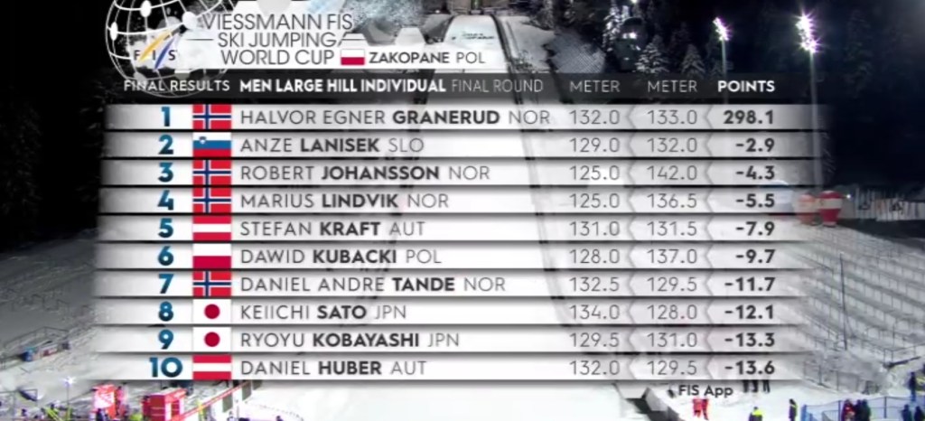 - 1. Halvor Egner Granerud (Norwegia) – 298.1 pkt