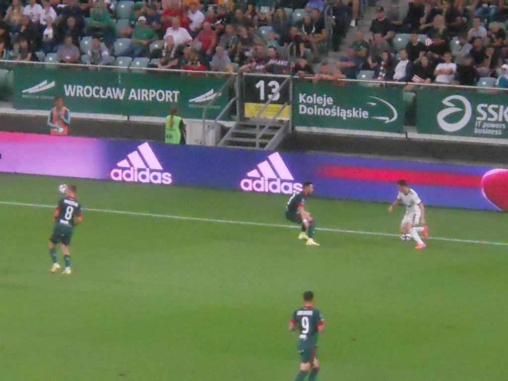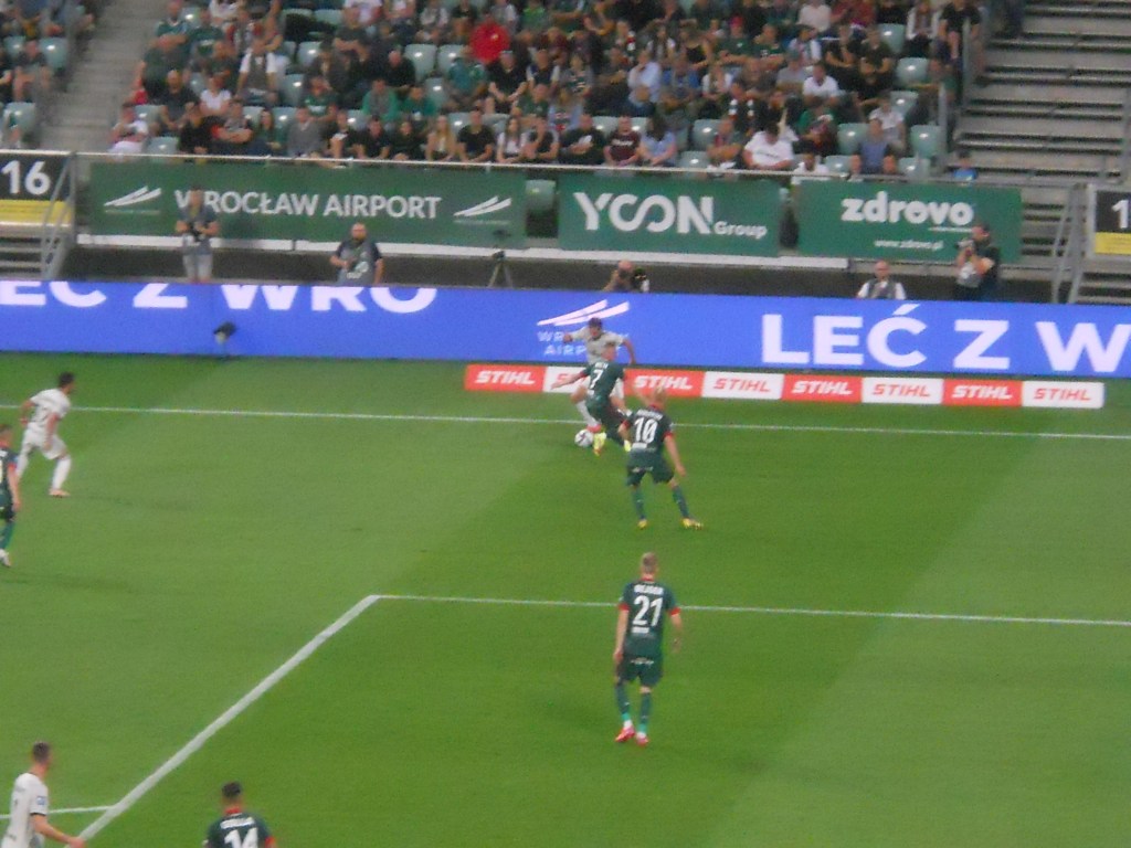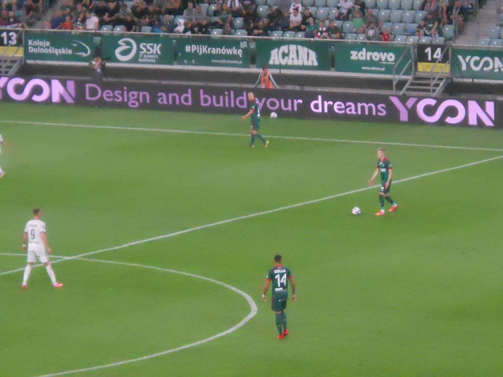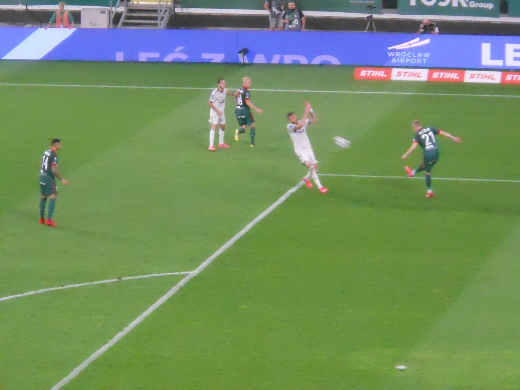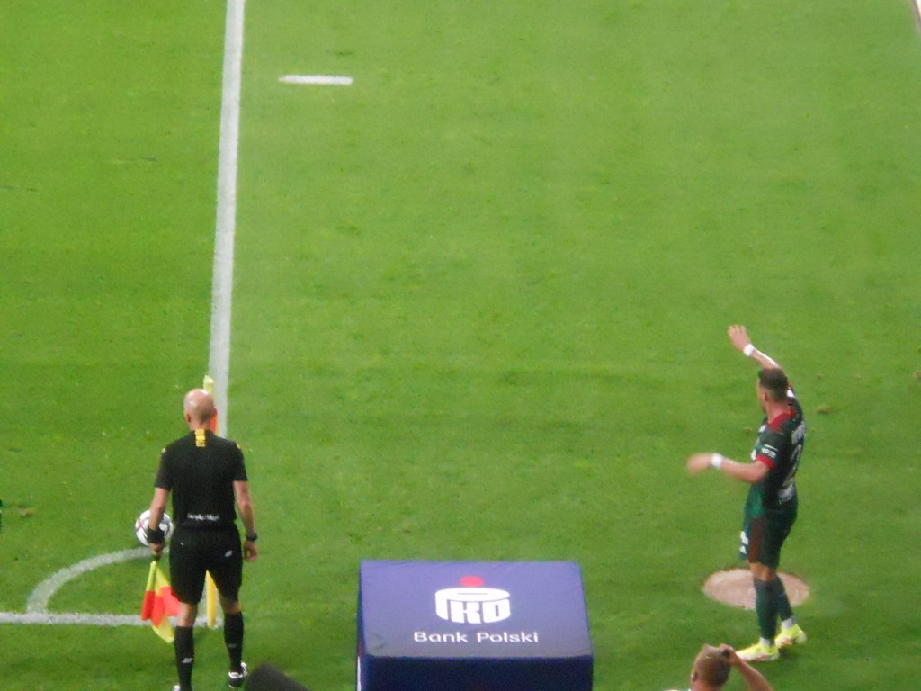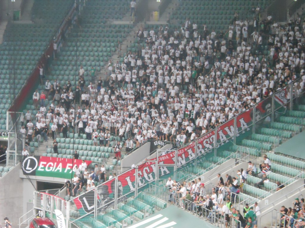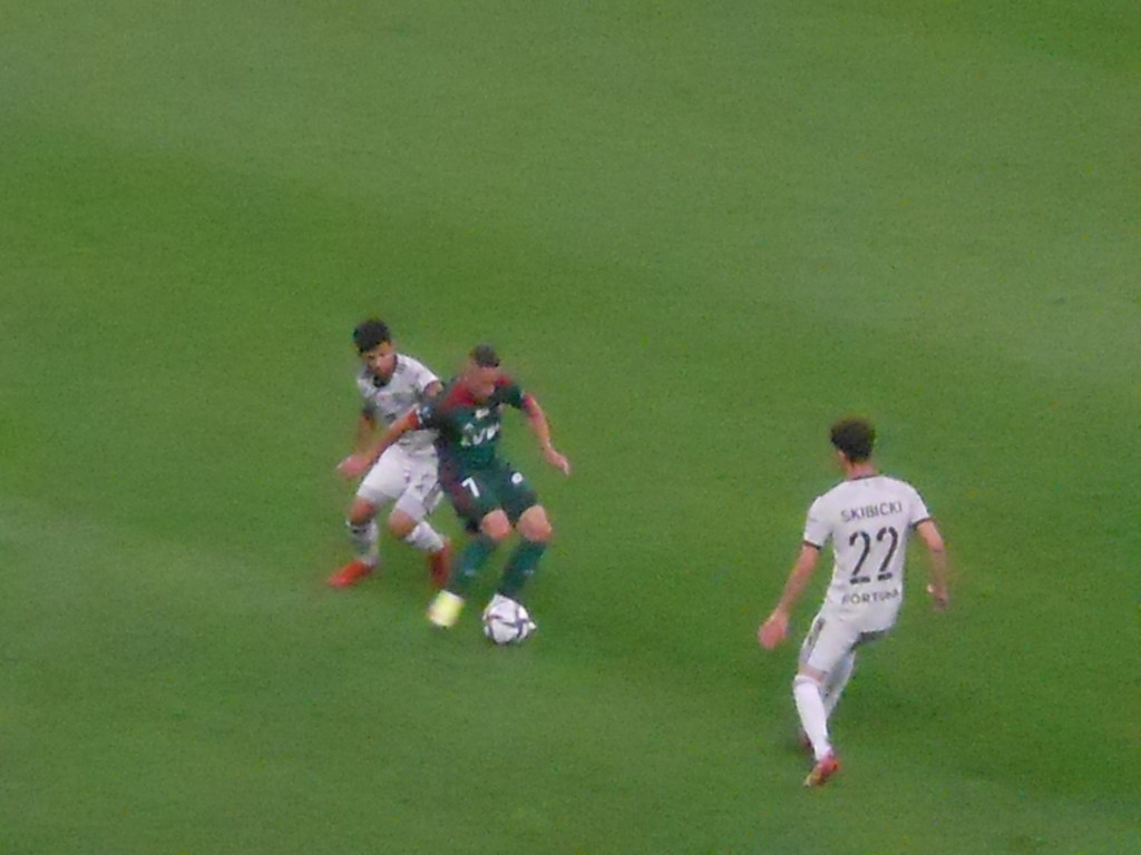 Pierwsza połowa spotkania obfitowała w wiele strzałów, które mogły dać bramki. Z początku przewagę miał zespół ze stolicy. Z czasem to gospodarze przejmowali inicjatywę. Liczna grupa fanów Legii przyjechała na spotkanie, z czasem kibice gości wyszli ze swojego sektora, wywieszając transparent (treść zobaczycie na zdjęciu), a następnie wrócili wspierać dopingiem „Legionistów”. Do przerwy bramkarze obu drużyn zachowali czyste konta.