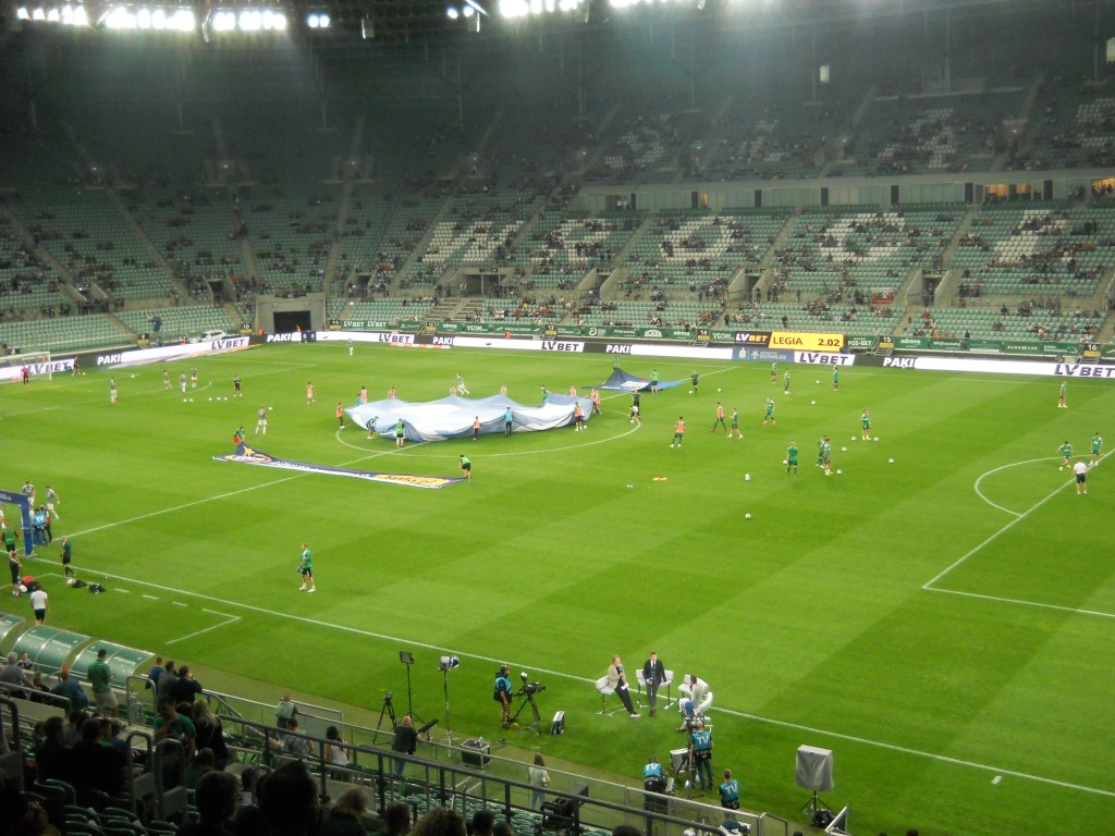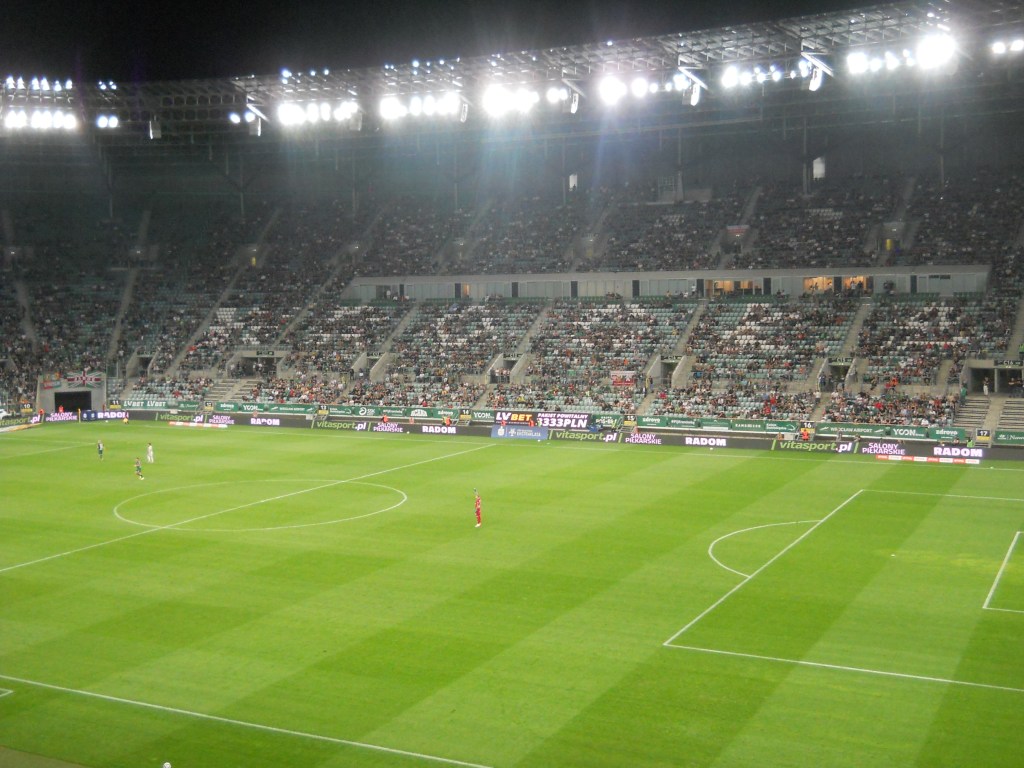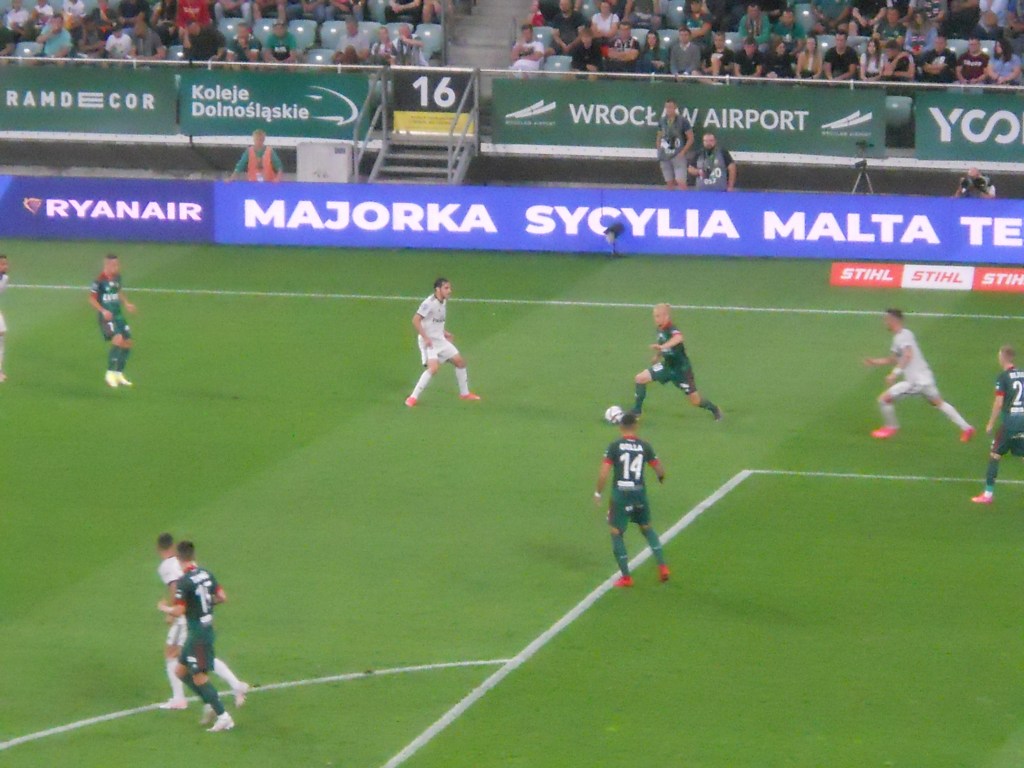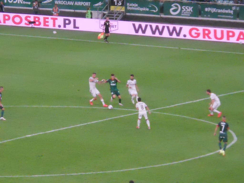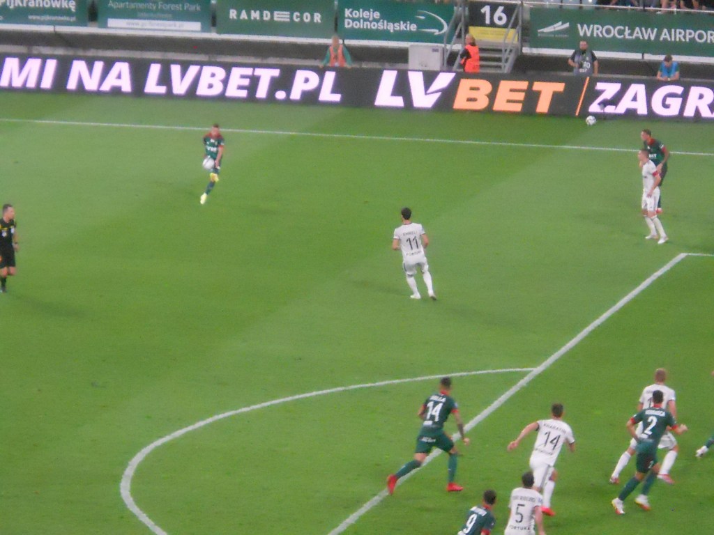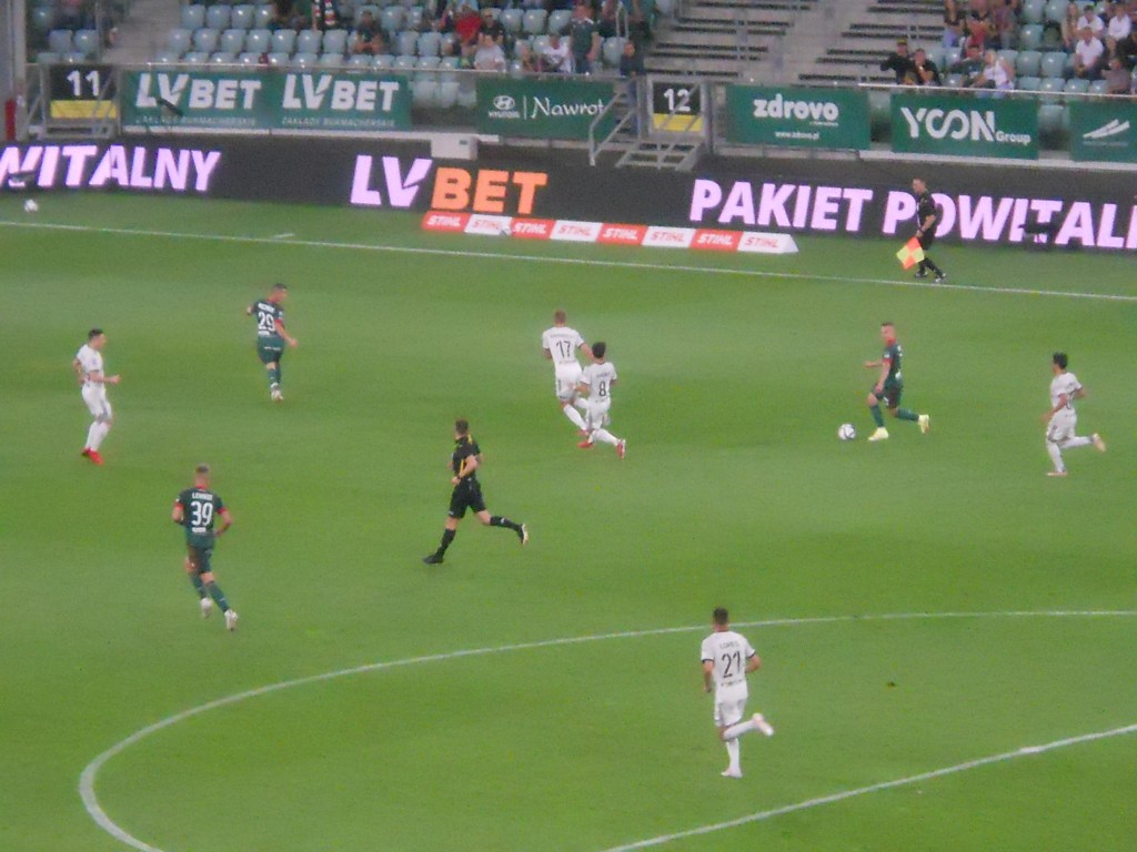 Pierwsza połowa spotkania obfitowała w wiele strzałów, które mogły dać bramki. Z początku przewagę miał zespół ze stolicy. Z czasem to gospodarze przejmowali inicjatywę. Liczna grupa fanów Legii przyjechała na spotkanie, z czasem kibice gości wyszli ze swojego sektora, wywieszając transparent (treść zobaczycie na zdjęciu), a następnie wrócili wspierać dopingiem „Legionistów”. Do przerwy bramkarze obu drużyn zachowali czyste konta.