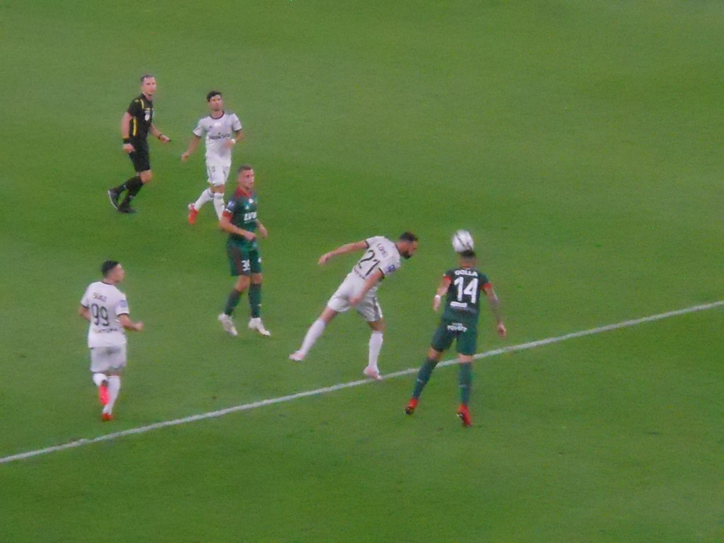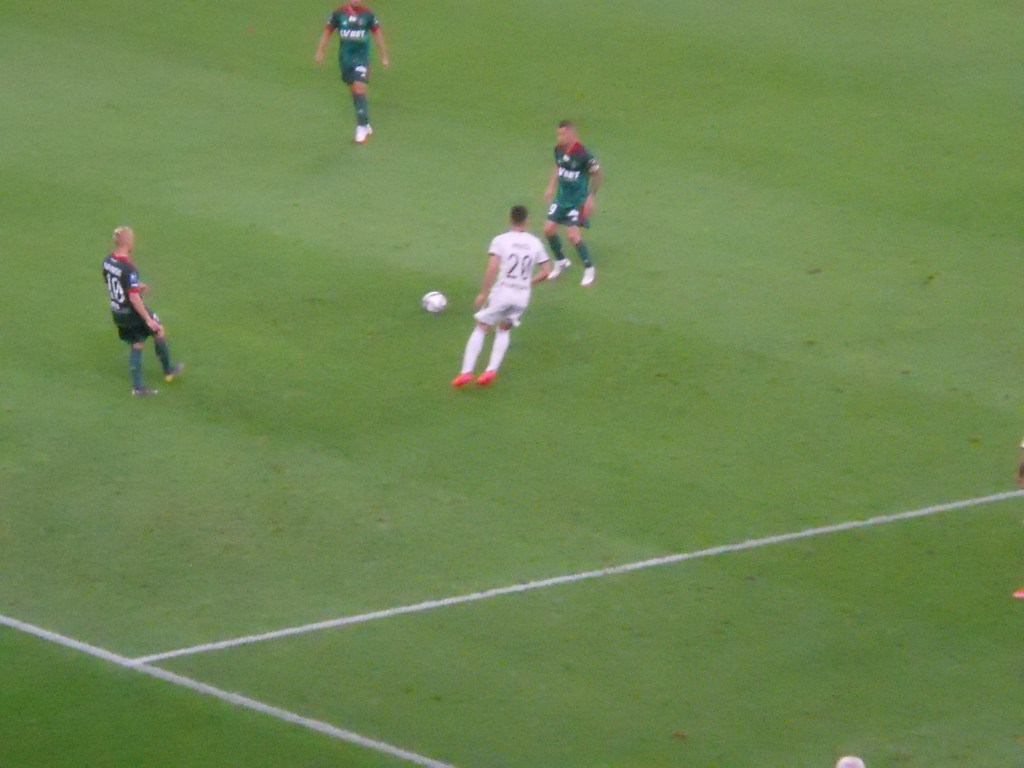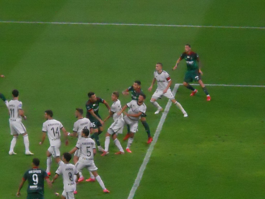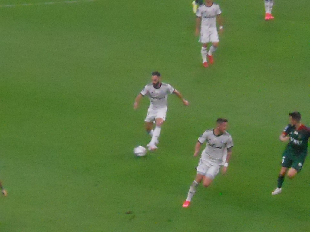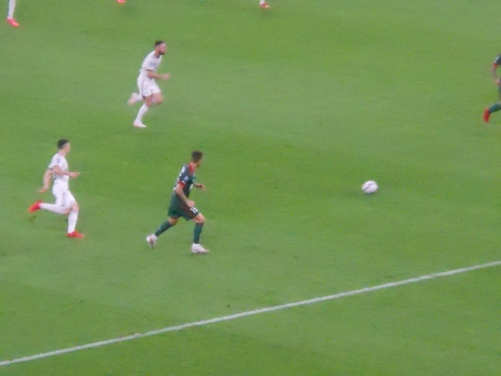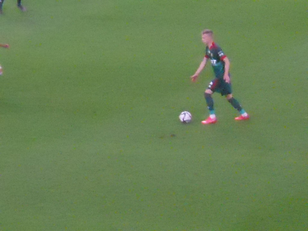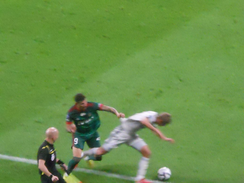 Pierwsza połowa spotkania obfitowała w wiele strzałów, które mogły dać bramki. Z początku przewagę miał zespół ze stolicy. Z czasem to gospodarze przejmowali inicjatywę. Liczna grupa fanów Legii przyjechała na spotkanie, z czasem kibice gości wyszli ze swojego sektora, wywieszając transparent (treść zobaczycie na zdjęciu), a następnie wrócili wspierać dopingiem „Legionistów”. Do przerwy bramkarze obu drużyn zachowali czyste konta.