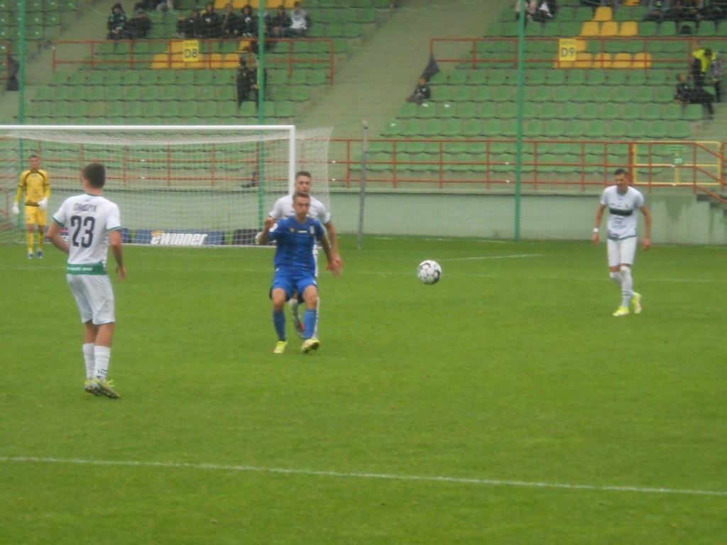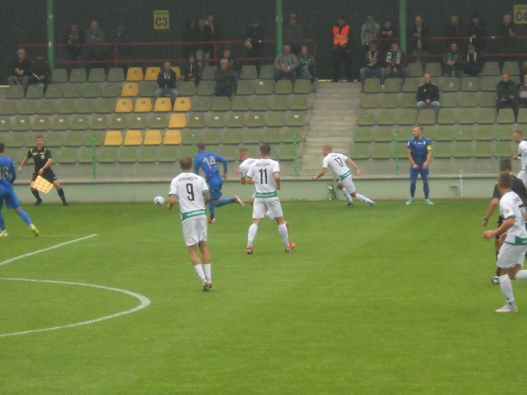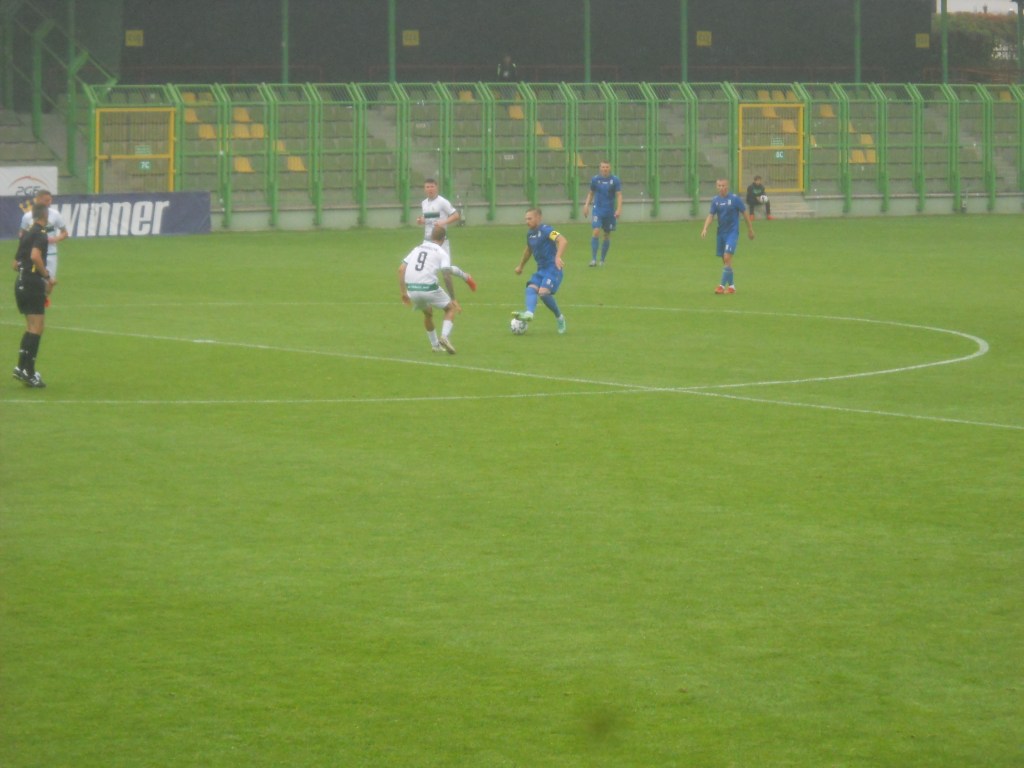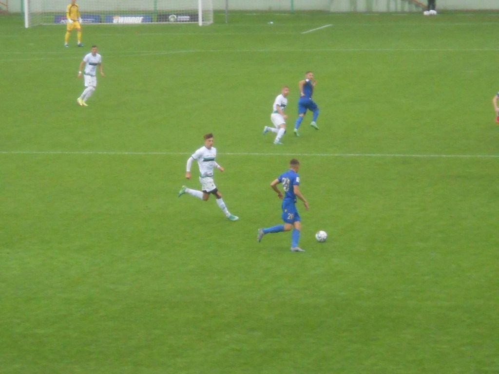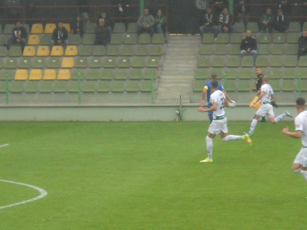 Chłodny i deszczowy dzień meczowy, nie przyciągnął zbyt wielu kibiców – na stadionie zameldowało się jedynie 610 kibiców. Pierwsza połowa spotkania GKS-u Bełchatów z rezerwami Lecha Poznań zakończona wynikiem 0:0. Obie drużyny próbowały zdobyć bramkę, jednak żadnej się nie udało. Pod koniec pierwszej połowy doszło do małego spięcia – faul Maksymiliana Pingota na Mateuszu Gancarczyku doprowadził do tego, że ten drugi uderzył w ogrodzenie boiska.