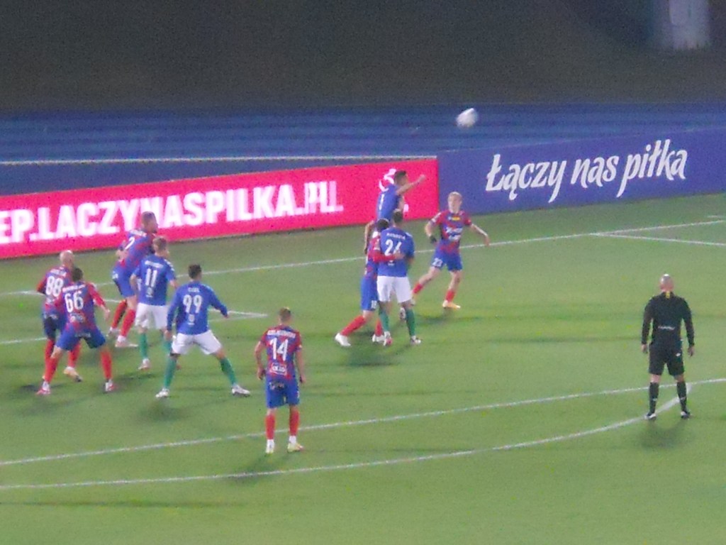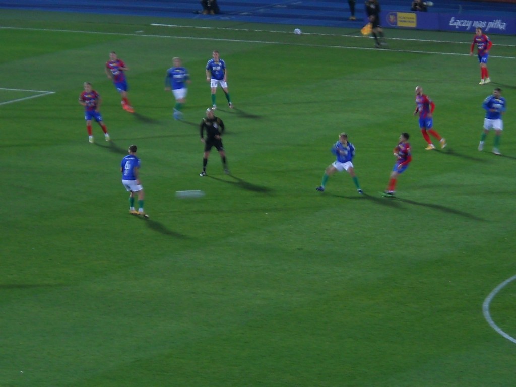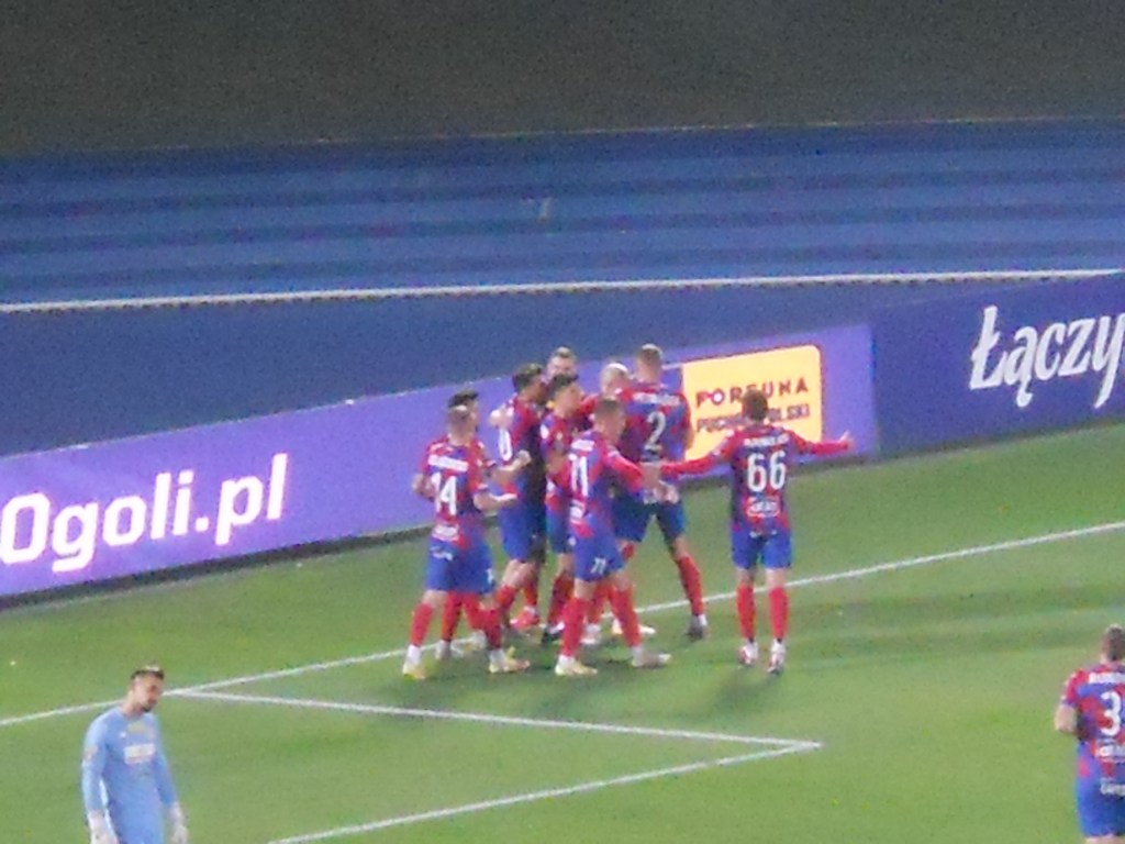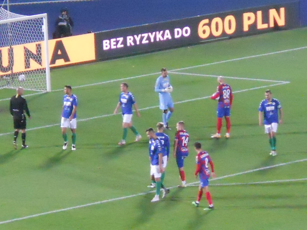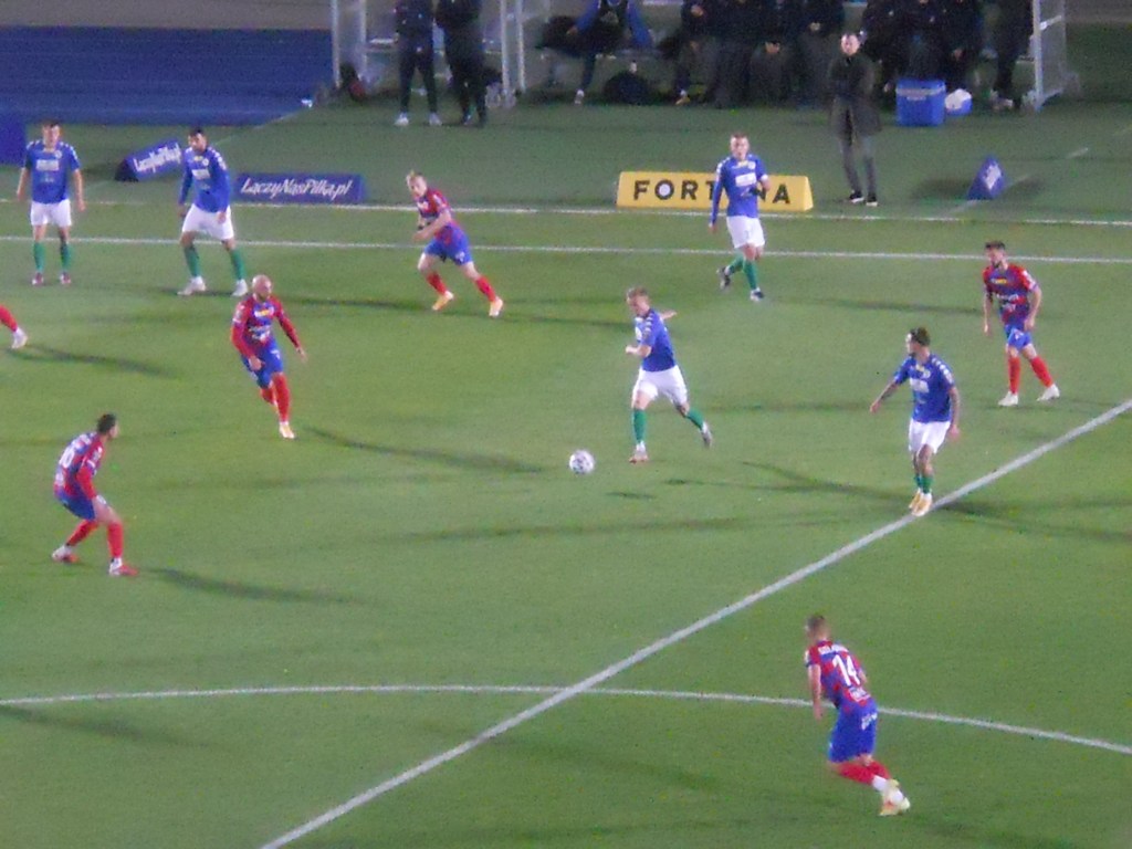 Od samego początku, zespoły grały wyjątkowo wyrównanie. Strzelać rozpoczęli jednak goście ustalając wynik 1. połowy na 0:2. Bramki zdobywali: Valeriane Gvilia z rzutu karnego w 37. minucie (odgwizdanego po weryfikacji VAR) oraz w 45. minucie Mateusz Wdowiak.