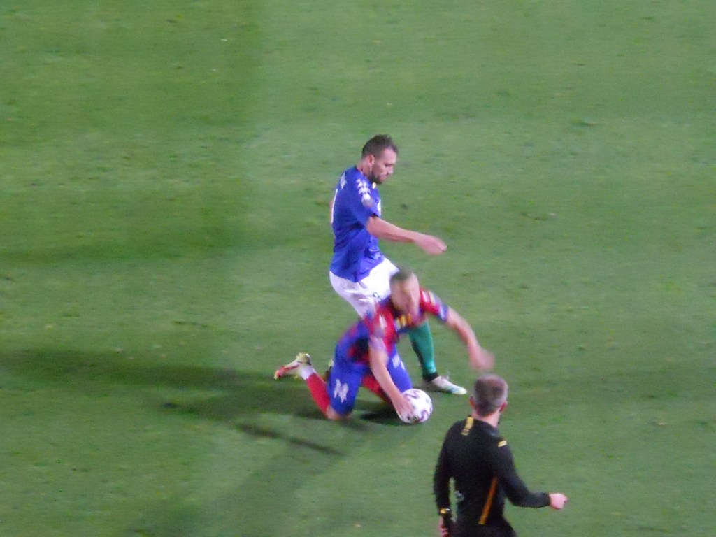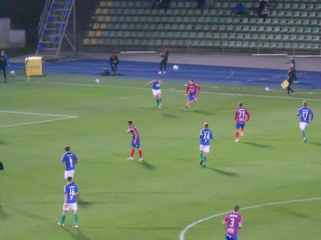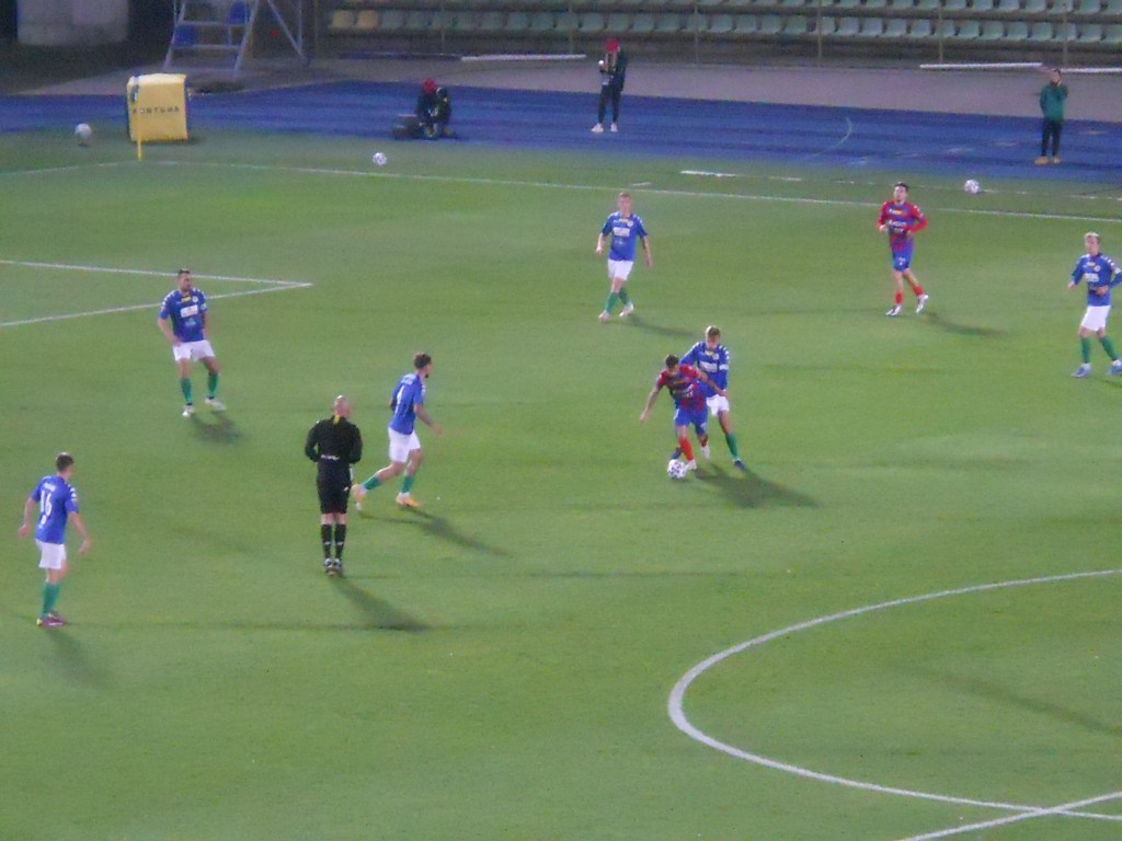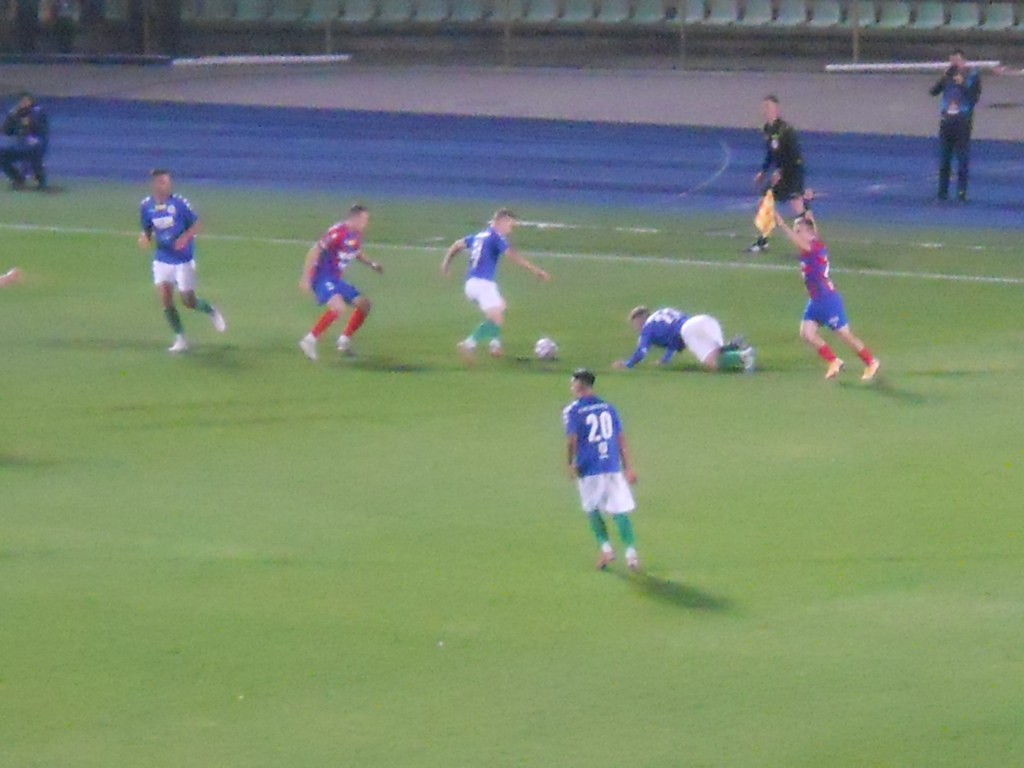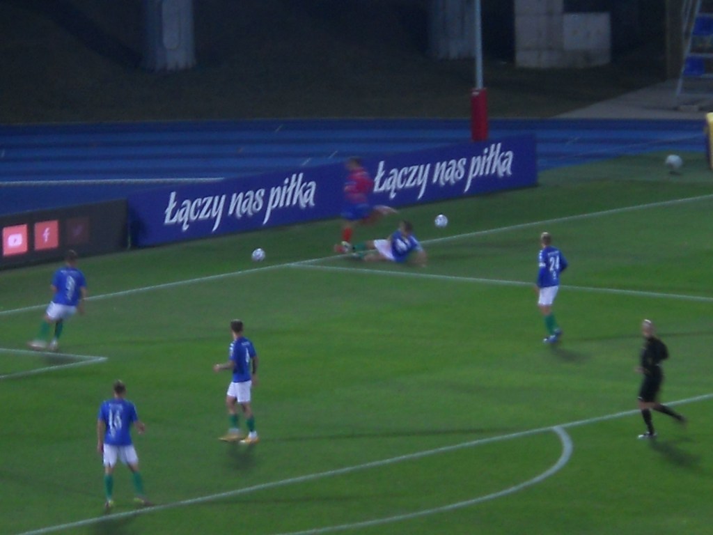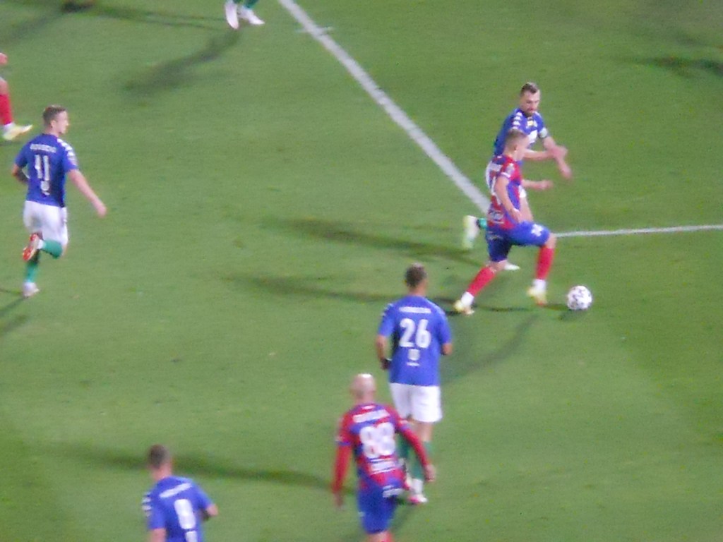 Od samego początku, zespoły grały wyjątkowo wyrównanie. Strzelać rozpoczęli jednak goście ustalając wynik 1. połowy na 0:2. Bramki zdobywali: Valeriane Gvilia z rzutu karnego w 37. minucie (odgwizdanego po weryfikacji VAR) oraz w 45. minucie Mateusz Wdowiak.