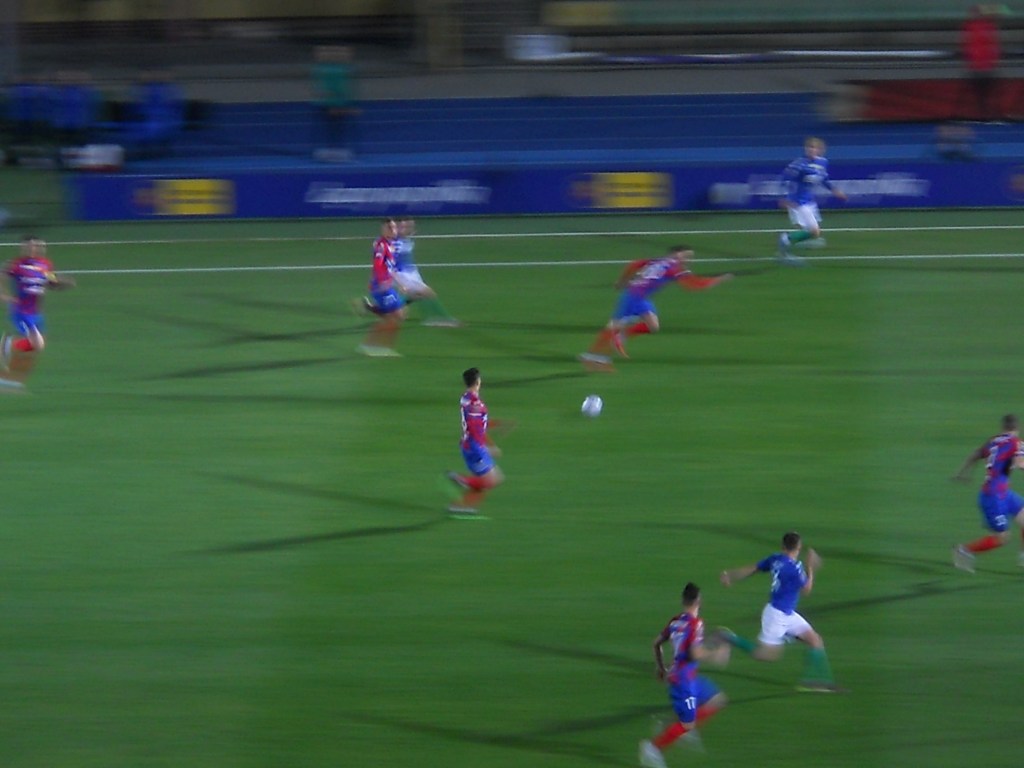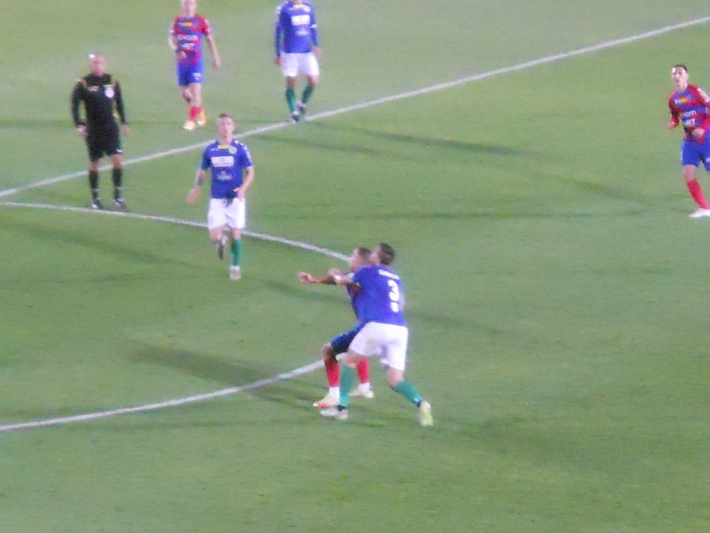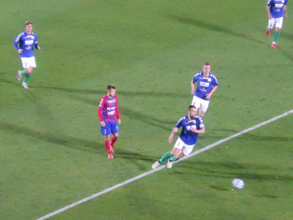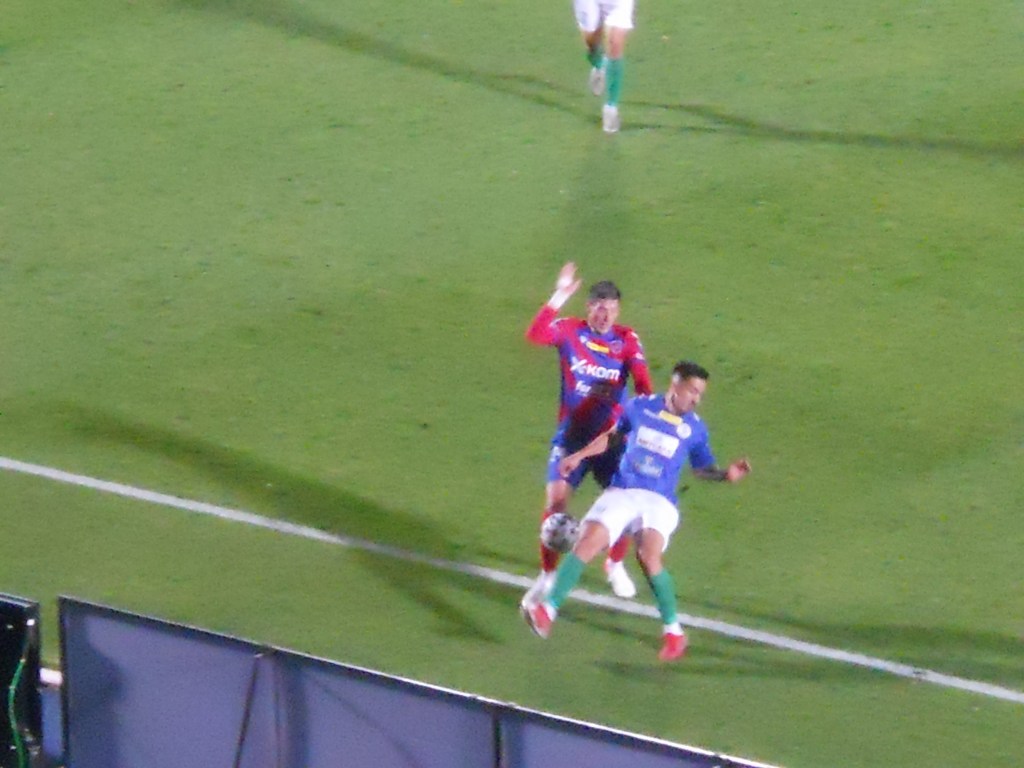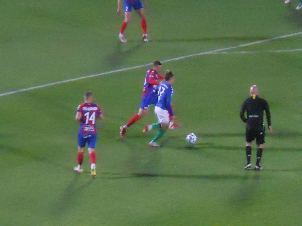 Od samego początku, zespoły grały wyjątkowo wyrównanie. Strzelać rozpoczęli jednak goście ustalając wynik 1. połowy na 0:2. Bramki zdobywali: Valeriane Gvilia z rzutu karnego w 37. minucie (odgwizdanego po weryfikacji VAR) oraz w 45. minucie Mateusz Wdowiak.