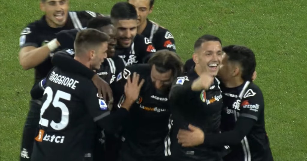 Kto wygrał to spotkanie? Spezia! Jedyna bramka padła po… samobójczym trafieniu Juana Jesusa w 37. minucie. Brazylijczyk niefortunnie odbił piłkę głową, która wpadła do bramki strzeżonej przez Davida Ospinę. Taka sytuacja, żeby wygrać mecz bez oddanego strzału celnego, nie miała miejsca od 2004 roku!