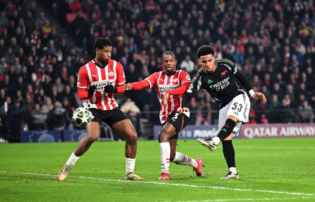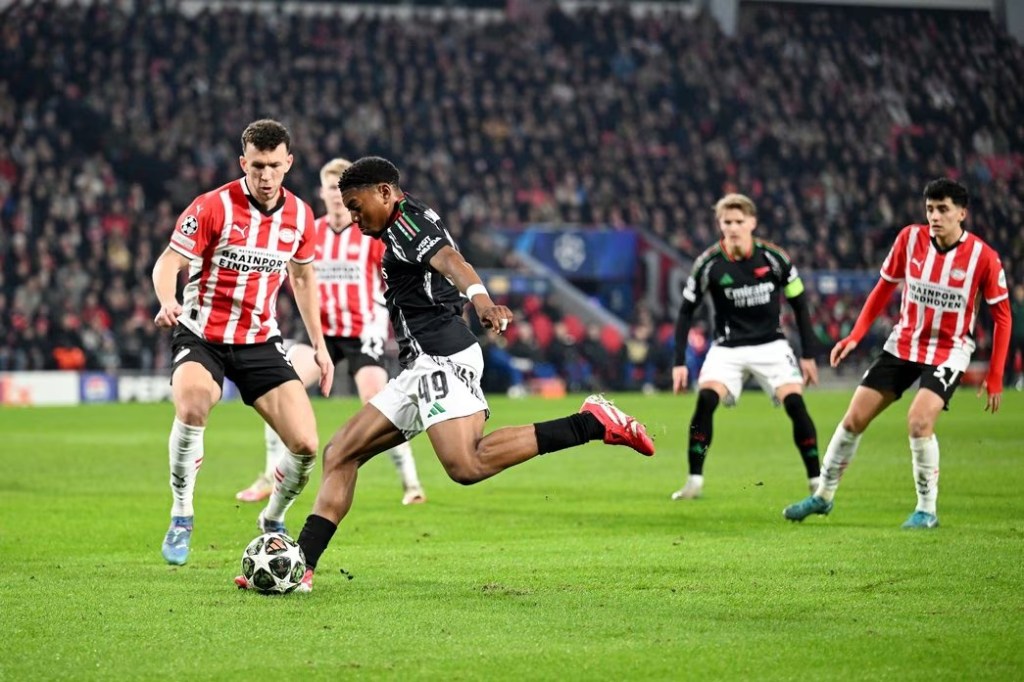 Jurien Timber otworzył wynik strzałem głową na dalszy słupek, po dośrodkowaniu Declana Rice’a. Następnie bramki strzelili Ethan Nwaneri i Mikel Merino i Arsenal prowadził po pół godzinie gry już 3:0. Rzut karny Noa Langa dał PSV iskierkę nadziei, która została stłumiona przez bramki Martina Odegaarda i Leandro Trossarda w ciągu dwóch minut drugiej połowy, tuż po wznowieniu gry.